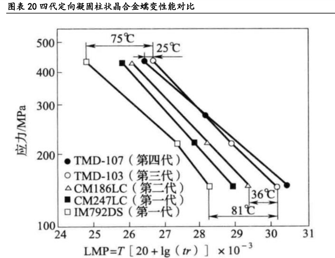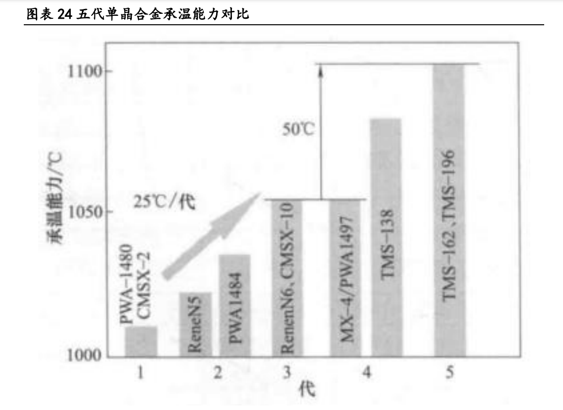 根据《航空航天用新材料》及《航空材料技术》披露,目前国外的定向凝固柱状 晶合金已经衍生了四代,第一代及第二代已经被制成多种结构的涡轮叶片和导向器 叶片而应用在多种先进发动机中。而我国目前已经完成了第一代的研究,第二代及 第三代仍处在技术积累过程中。