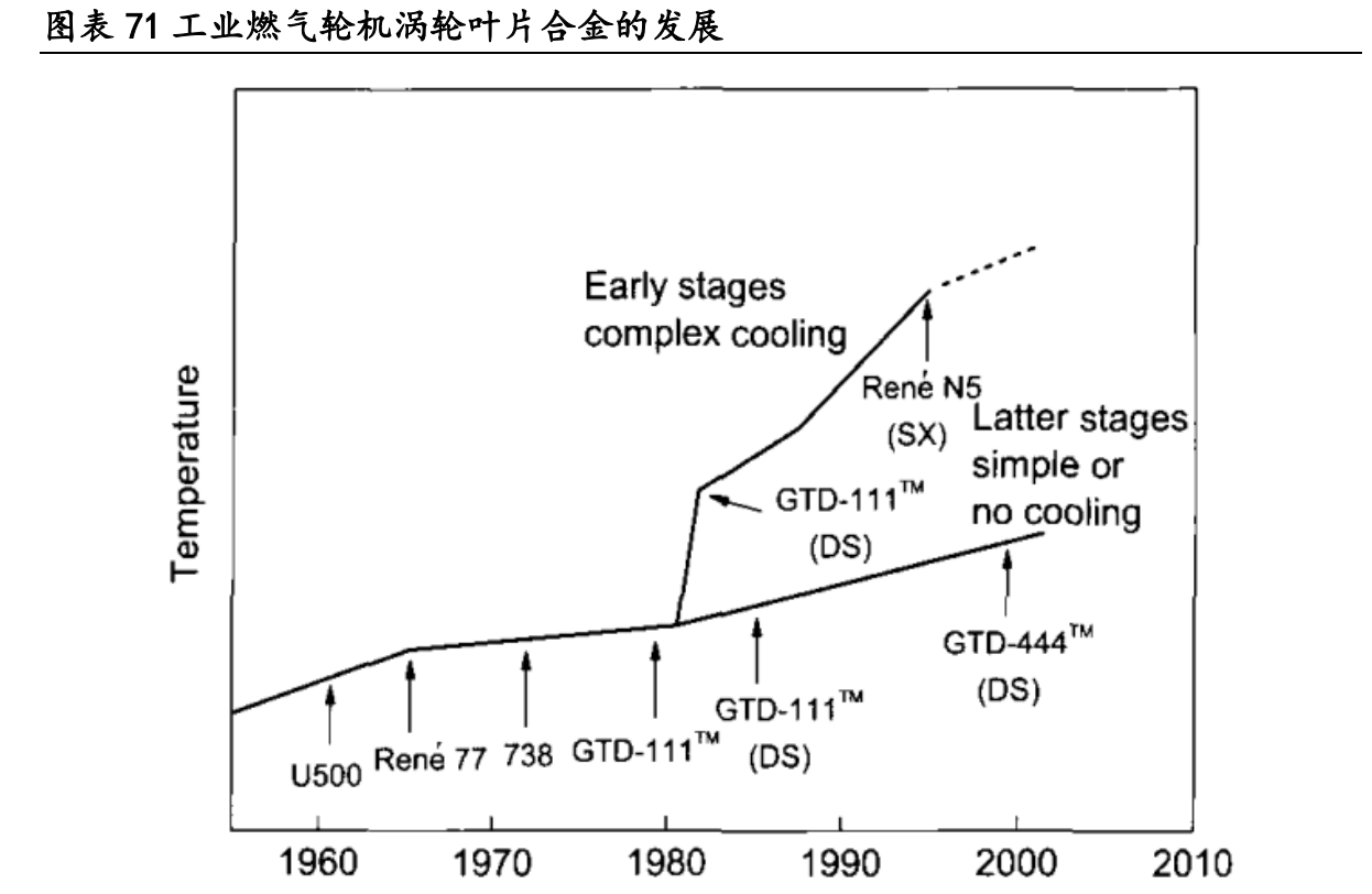 1.2 铸造高温合金:被广泛应用于燃气轮机涡轮叶片部位