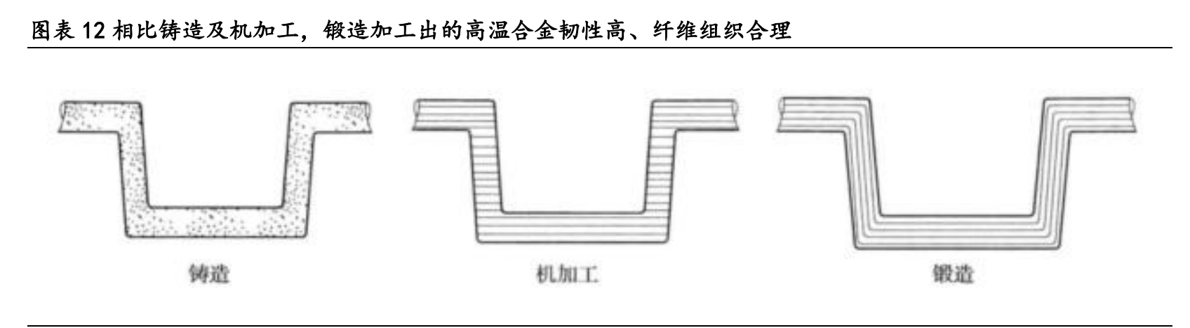 变形工艺方面,相比铸造及机加工,锻造加工出的合金综合性能好