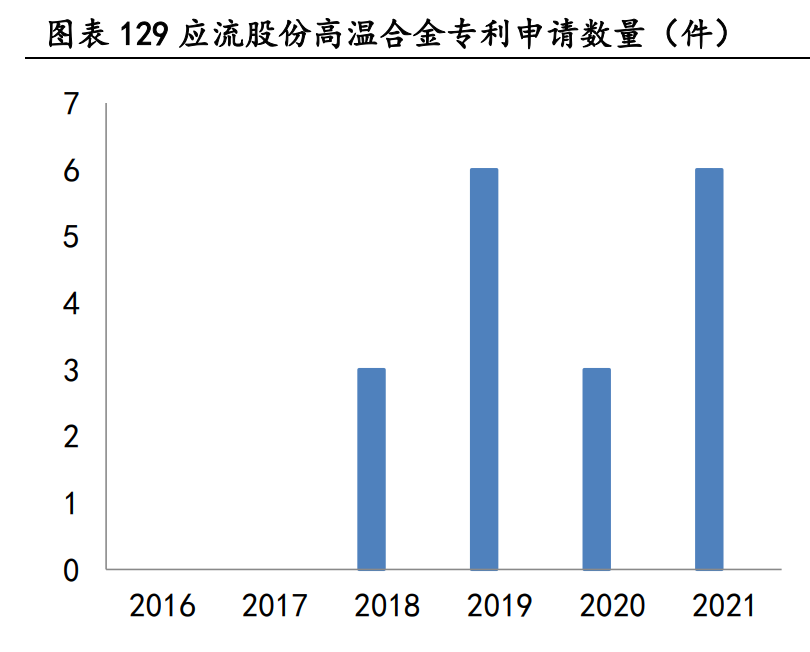 数量上,沈阳黎明航空发动机(集团)有限责任公司拥有专利数量最多,已 申请 8 项专利,上市公司中抚顺特钢及钢研高纳均有 2 件,未上市公司中 航上大则拥有 3 件。