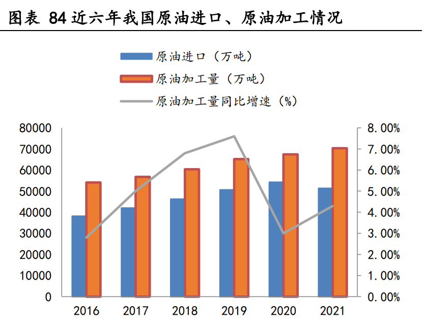 炼化装备升级转型关键期或将成为高温合金未来主战场。中国炼化行业将瞄准转型升级、高质量发展。一是加快炼油结构调整。以先进产能淘汰落后产能;提升炼 化一体化、合并减油增化,利用多产低碳烯烃和化工原料;与新能源汽车产业融合 发展,将加油站转变为“油气电氢”综合能源补给站。二是实现化工差异化、高端 化发展。优化烯烃产业链结构、提高芳烃产业链竞争力、突破高端材料技术瓶颈;拓 展化工原料多元化渠道,提升价值链空间。三是要重视技术创新,包括重油加工转 化技术、高端化工材料生产技术、塑料循环利用技术、炼化企业数字化技术(包括原 油分子信息库、智慧供应链、物流能量管理与优化、设备运行优化系统和智慧加油 站等)。近五年原油加工量稳步提升,2020 年达到 6.7 亿吨,四年复合增速达到 6.2%, 伴随炼油设备更新换代,高温合金的需求有望释放。(报告来源:未来智库)