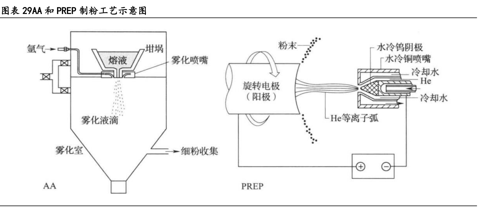超纯净细粉是制件性能的基础,优质高温合金粉末的制备是关键环节。惰性气 体雾化、等离子旋转电极及真空雾化法是最通用的三种制粉方式。其中氩气雾化应 用最为广泛,其流程大致是在整个真空及密闭设备中,经真空熔炼的合金熔体经注 口流下,在高压高速的气流中雾化成粉末,因而母合金质量、设备、参数选择至关重 要。