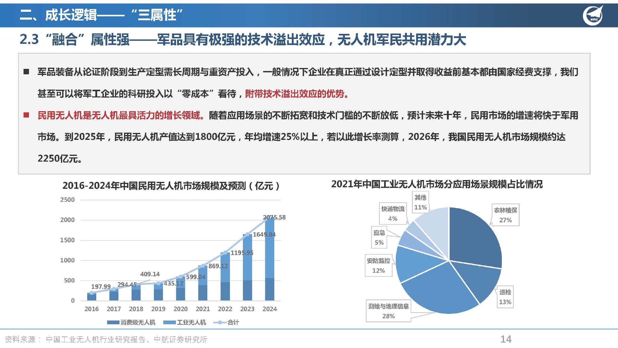 2.3“融合”属性强——军品具有极强的技术溢出效应,无人机军民共用潜力大