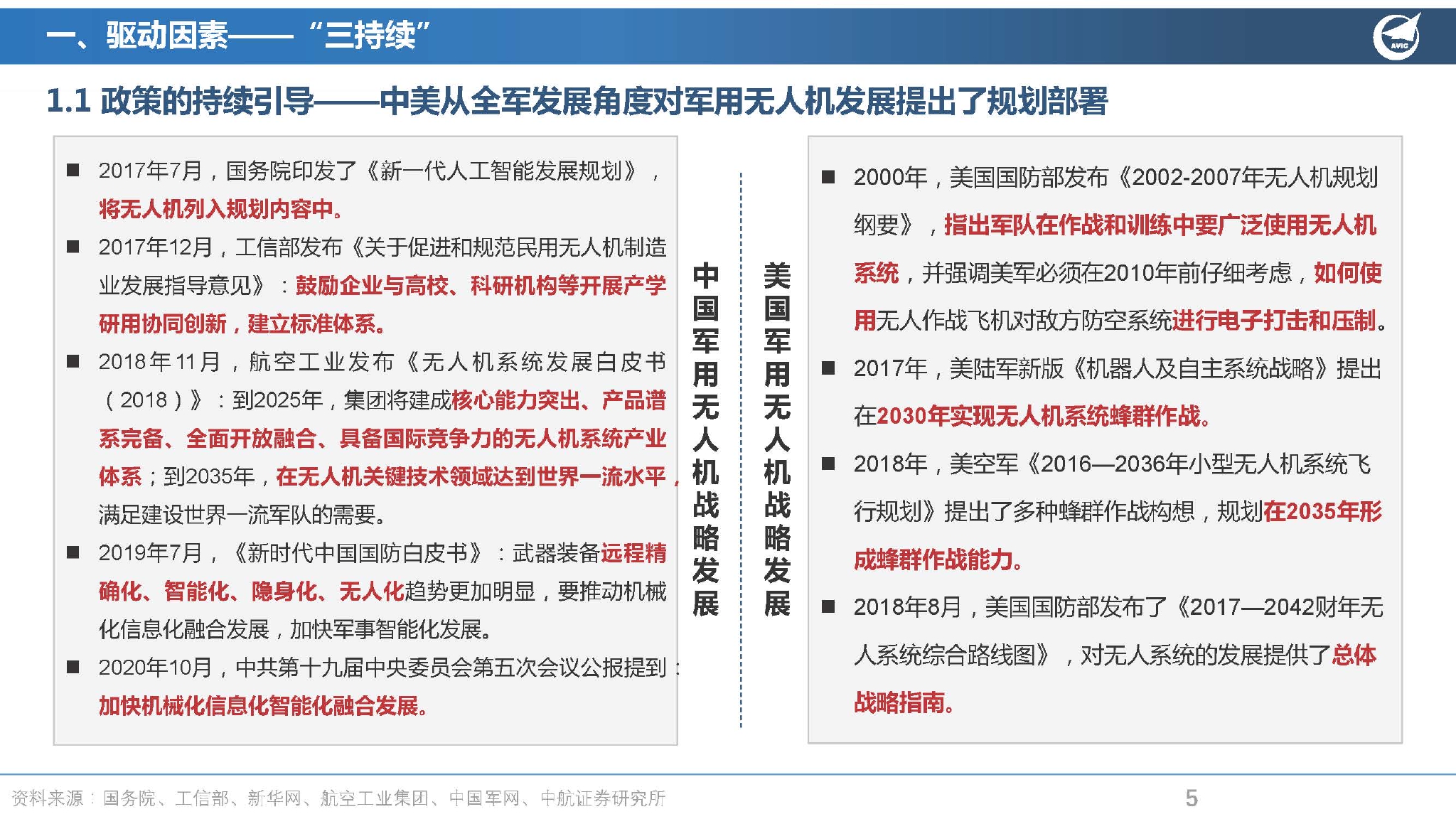 1.1 政策的持续引导——中美从全军发展角度对军用无人机发展提出了规划部署
