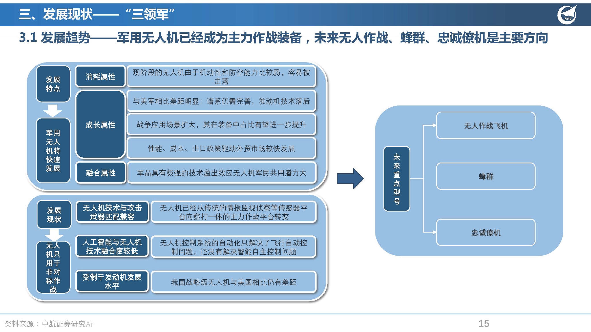 3.1 发展趋势——军用无人机已经成为主力作战装备,未来无人作战、蜂群、忠诚僚机是主要方向