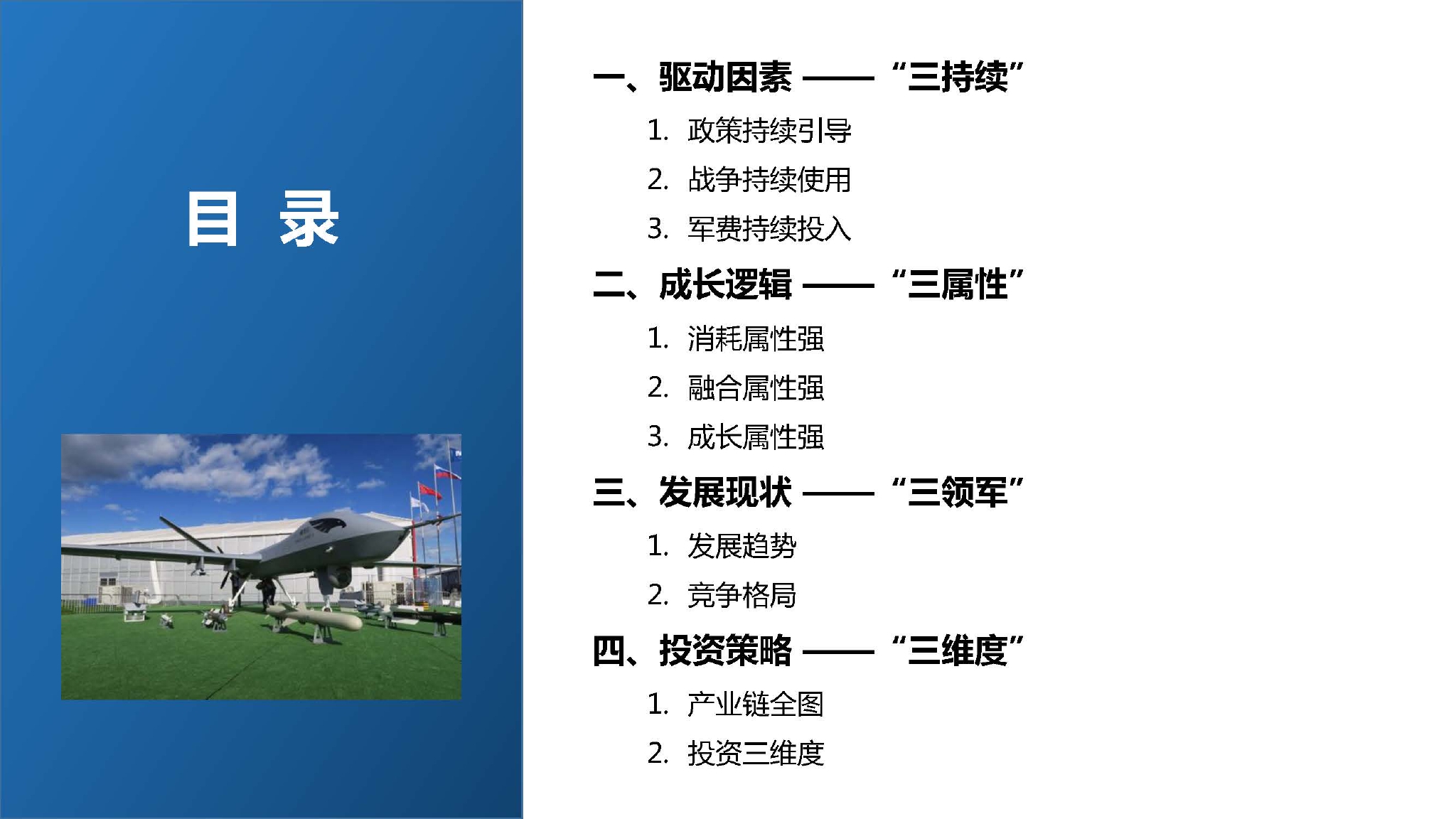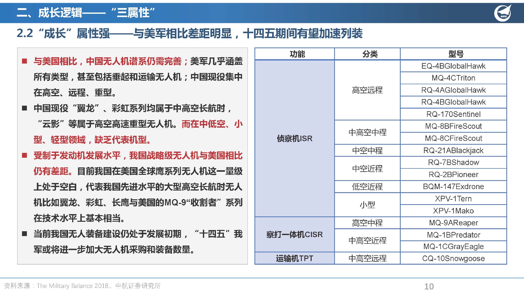 当前我国无人装备建设仍处于发展初期,“十四五”我 军或将进一步加大无人机采购和装备数量。
