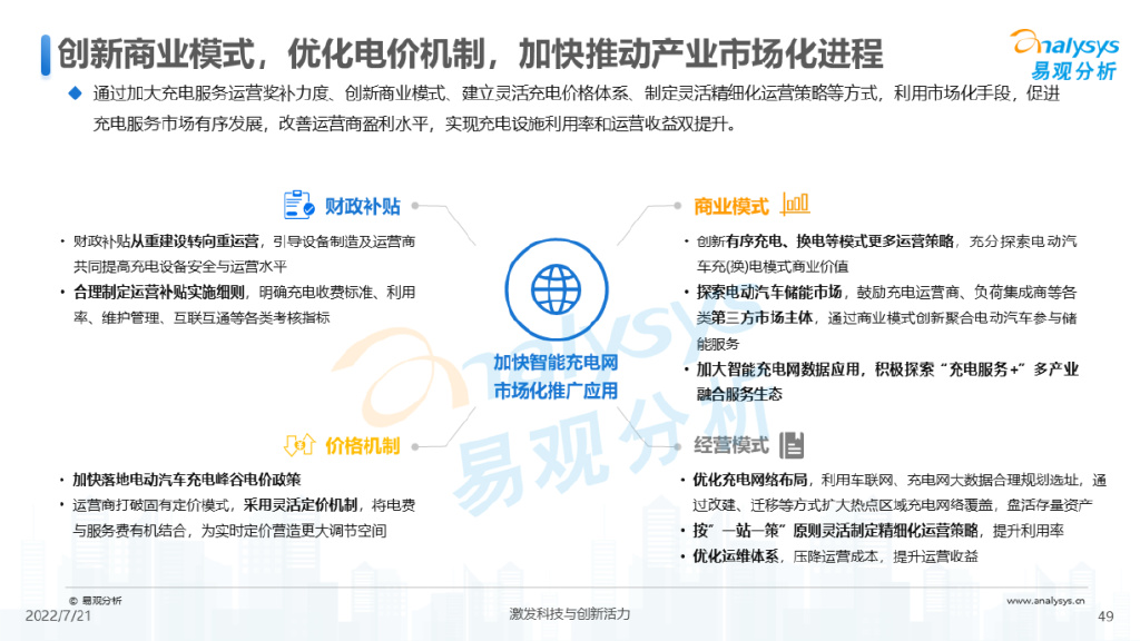 - 创新商业模式,优化电价机制,加快推动产业市场化进程;