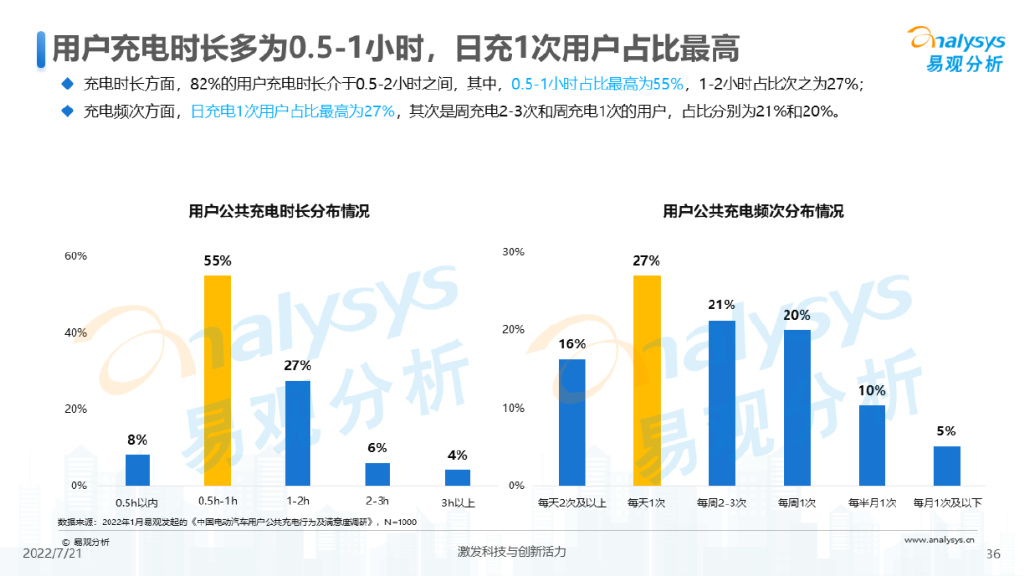 - 用户充电时长多为0.5-1小时,日充1次用户占比最高;