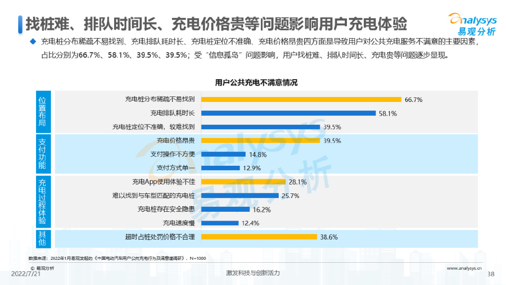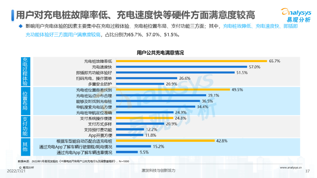 - 用户对充电桩故障率低、充电速度快等硬件方面满意度较高,而找桩难、排队时间长、充电价格贵等问题影响用户的充电体验。