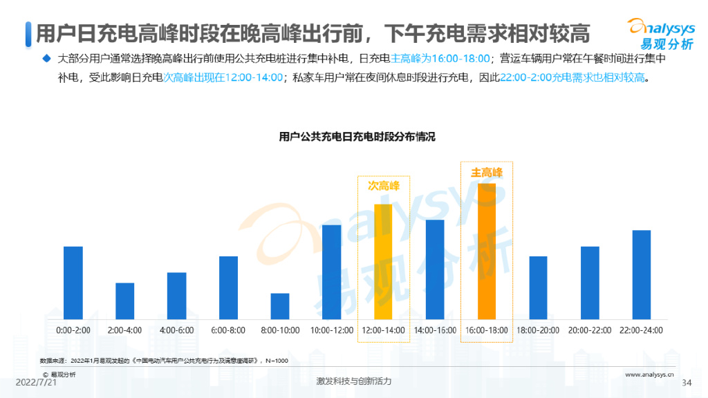 - 用户日充电高峰时段在晚高峰出行前,下午充电需求相对较高;