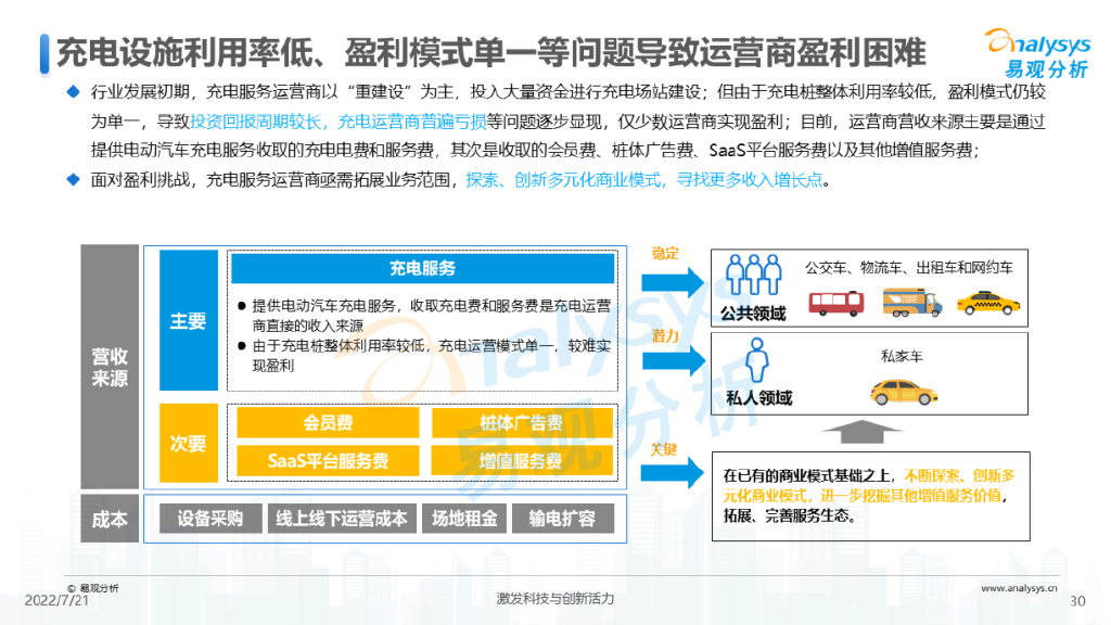 - 充电设施利用率低、盈利模式单一等问题导致运营商盈利困难;