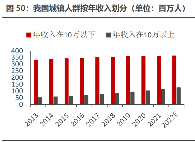 猎头,即中高端人才(泛指年收入达到 10 万以上的收入群体)获取寻访服务, 该市场主要服务的是具有一定工作经验的中高层管理人员以及行政人员,他们当 前拥有稳定工作以及收入来源但是仍不抗拒更多的求职机会,也称为被动求职者。 行业面向管理中高层,2022 年预计市场规模达 2400 亿元,占人服行业 10%。 根据灼识咨询测算,我国 2017 年猎头服务的市场规模达到了 967 亿元,预计未 来将会继续增长,到 2022 年预计将会突破 2433 亿元, 约占我国整体人力资源市 场的 10%,2016-2021 年 CAGR 为 10.25%,高于同期平均年薪在 10 万元以下 的人才市场复合年均增长率 0.89%。根据同道猎聘招股书,我国城镇劳动力群体 中,2017 年年收入达到 10 万以上的群体占城镇人口的比例已经达到 18%,未来这 个比例还将持续上升,行业提升空间较大。