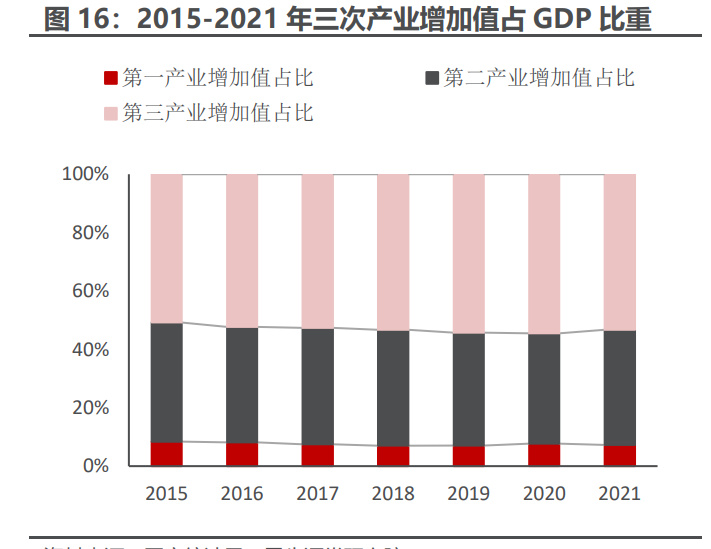 产业端:在更长维度的产业端则面临产业结构调整带来人员流动性大加 大的特点; 从更长维度上来看,国内产业结构转型为人力资源服务提供广阔的发展空间。 如果我们将视野拉长到国内产业结构的表现上,可以发现近 10 年来国内产业结构 发生变化,第三产业从业人员占比已经从 2011 年的 35.7%提升到 2021 年底 47.7%,第三产业具有人员密集、人员流动大等显著特征,催生我国人资服务行业 向更广阔的业务领域拓展。