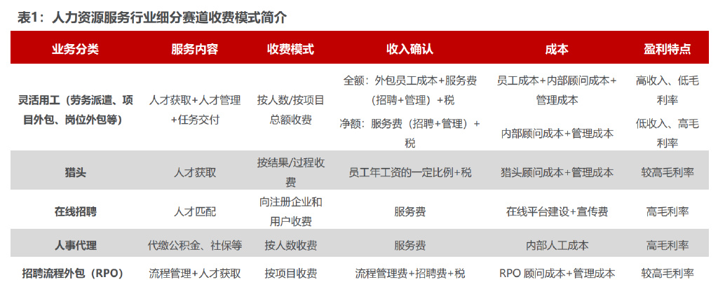 2 关注人服行业三条主线:灵活用工高成长,招聘、 人事代理业务&薪酬福利外包商业模式迥异,各有 机会