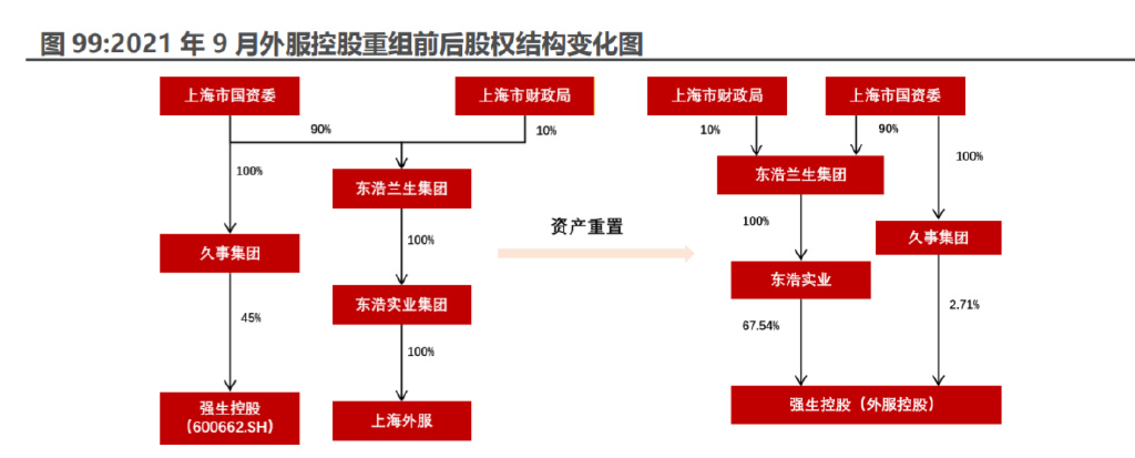 外服控股隶属东浩兰生集团,为国内领先的综合人力资源服务商,借壳强生 控股实现上市,增强公司竞争力。公司成立于 1984 年,是国内较早一批从事人力 资源服务的企业之一,历经 38 载成为国内领先的综合性人服龙头国企。上市前, 公司隶属东浩兰生集团,东浩兰生是大型现代服务业国有骨干企业集团,聚焦人 力资源服务、会展赛事服务和国际贸易服务三大核心主营业务。