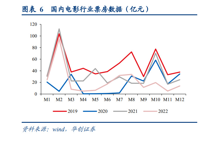 内容侧:疫后供给变化与疫情波动正相关。20 年疫情影响影片拍摄进度,上映影片数仅 为 19 年 60%;21 年国内疫情相对平稳,其产能也已基本恢复至 19 年同期水平,疫情对 影片制作的负面影响已基本消化。但 22 年受疫情影响供给再次回落(358 部,与 20 年 基本持平),但我们认为此时产能限制并非是回落核心原因(1-2 月疫情稳定期供给与 19 年持平),主要系疫情扰动下片方信心不足,主动撤离/延期上线(3-6 月表现尤为明显)。