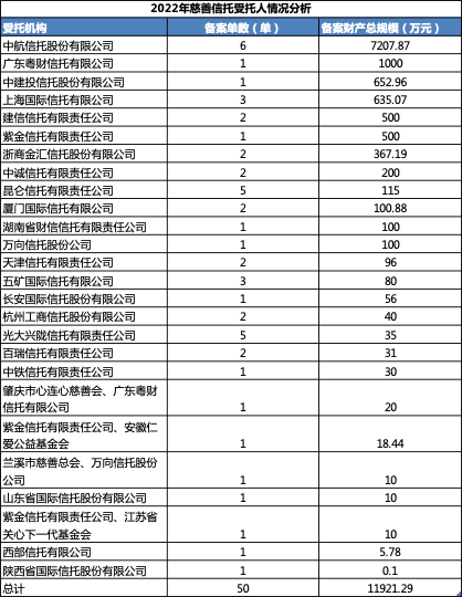 数据显示,2022年第一季度我国备案的50单慈善信托中,万元级别的有7单,十万级别的有24单,百万级别的有16单,千万级别的有3单。